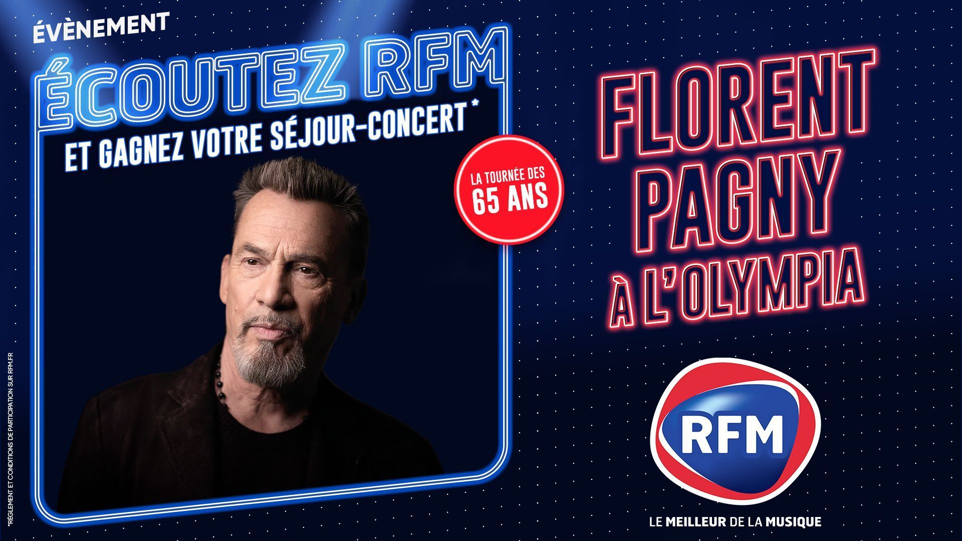Florent Pagny vous donne rendez-vous à Paris dans la salle mythique de l'Olympia. A cette occasion, RFM vous offre votre séjour-concert et vos places pour le show du 27 juin 2026.