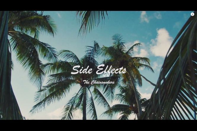 Le clip de Side Effects met en scène l'actrice Camila Mendes, sous les traits d'une employée d'hôtel exténuée par le travail. Après avoir reçu un message de son patron lui annonçant qu'elle allait travailler tout le week-end, la jeune femme se lâche et improvise une chorégraphie sur son lieu de travail, au son du dernier tube des Chainsmokers.