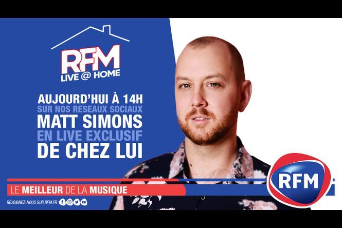 hez lui, pour vous. RFM Live @ Home est à suivre toute la semaine semaine sur les réseaux sociaux de RFM. Retrouvez chaque weekend l’intégralité des vidéos de la semaine. Après Hoshi, Maëlle, Patrick Bruel ou encore Gauvain Sers qui a ouvert le bal, RFM vous propose de découvrir ce mercredi 15 avril, à 14h, une prestation exclusive de Matt Simons !