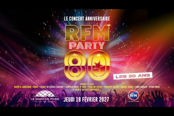 Le 18 février 2027, la tournée anniversaire RFM PARTY 80 investira le mythique Dôme de Paris, et partira en tournée des Zéniths partout en France ! Prévente vendredi 13/02 à 12h00 & mise en vente générale le 18 février à 20h.