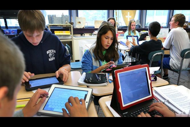 Un quart des élèves de 5ème seront équipés en tablettes à partir de la rentrée: le plan visant à rattraper le retard de la France dans le numérique éducatif s'installe progressivement, au rythme de la formation des professeurs et de la modernisation des réseaux dans les établissements.